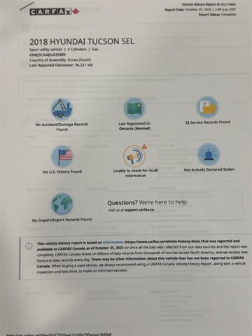 2018 Hyundai Tucson SE with only 109000 km. 2 L AWD with power sunroof, heated power seats, NAV, backup camera and more! No accidents. Fully certified for $15999 plus HST and lic. Financing available oac. Extended warranties available (see dealer). Durham Motorsports is located at 56 Bloor Street East Oshawa. Please contact for a convenient appointment time